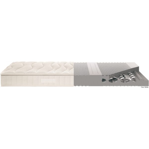 - – Kombikern aus hochwertigem HR-Kaltschaum unter Verwendung von Sojaölen hergestellt, mit integrierten Torsionsfedern und einem Raumgewicht von 50kg/m3